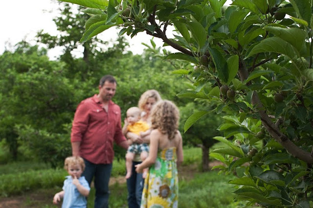 Driving to photograph this family, it began raining steadily. "Why oh why must it rain NOW??!!" I said in absolute frustration (there may have been some expletives). It had been sunny and beautiful all day...and then rain. As I pulled into the apple orchard, the steady rain slowed to a sprinkle....and then SUNSHINE! Thank you Lord! My good friends arrived with smiles on their faces and we set off exploring.